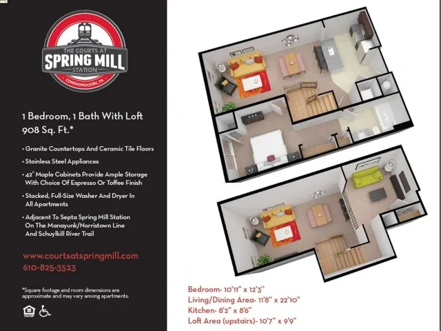 1 Bed 1 Bath Loft 1 Bed Apartment Courts at Spring Mill Station