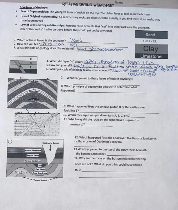 Answer Key Relative Dating Activity Worksheet Answers Printable