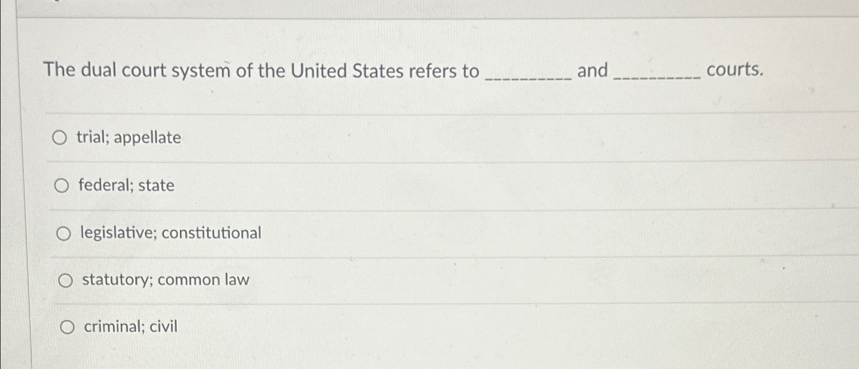 Solved The concept of the quot dual court system quot refers totrial Chegg com