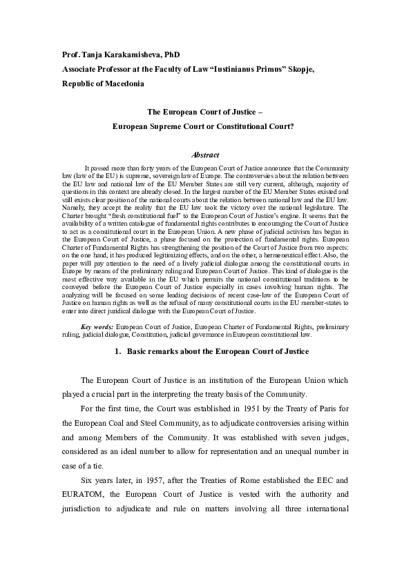 (DOC) The European Court of Justice European Supreme Court or