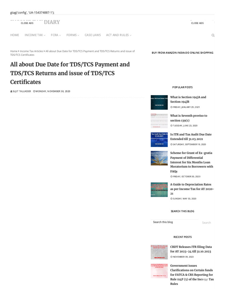All About Due Date For TDS TCS Payment and TDS TCS Returns and
