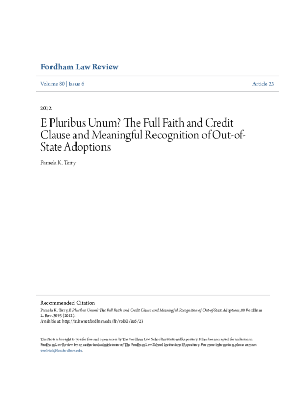 (PDF) E Pluribus Unum The Full Faith and Credit Clause and Meaningful