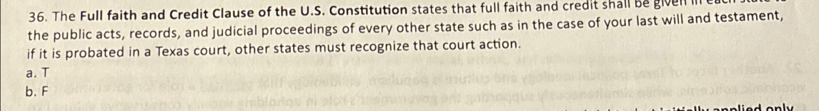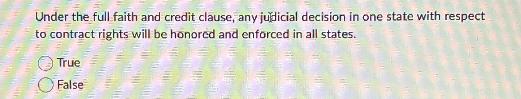 Solved Under the full faith and credit clause any juddicial Chegg com