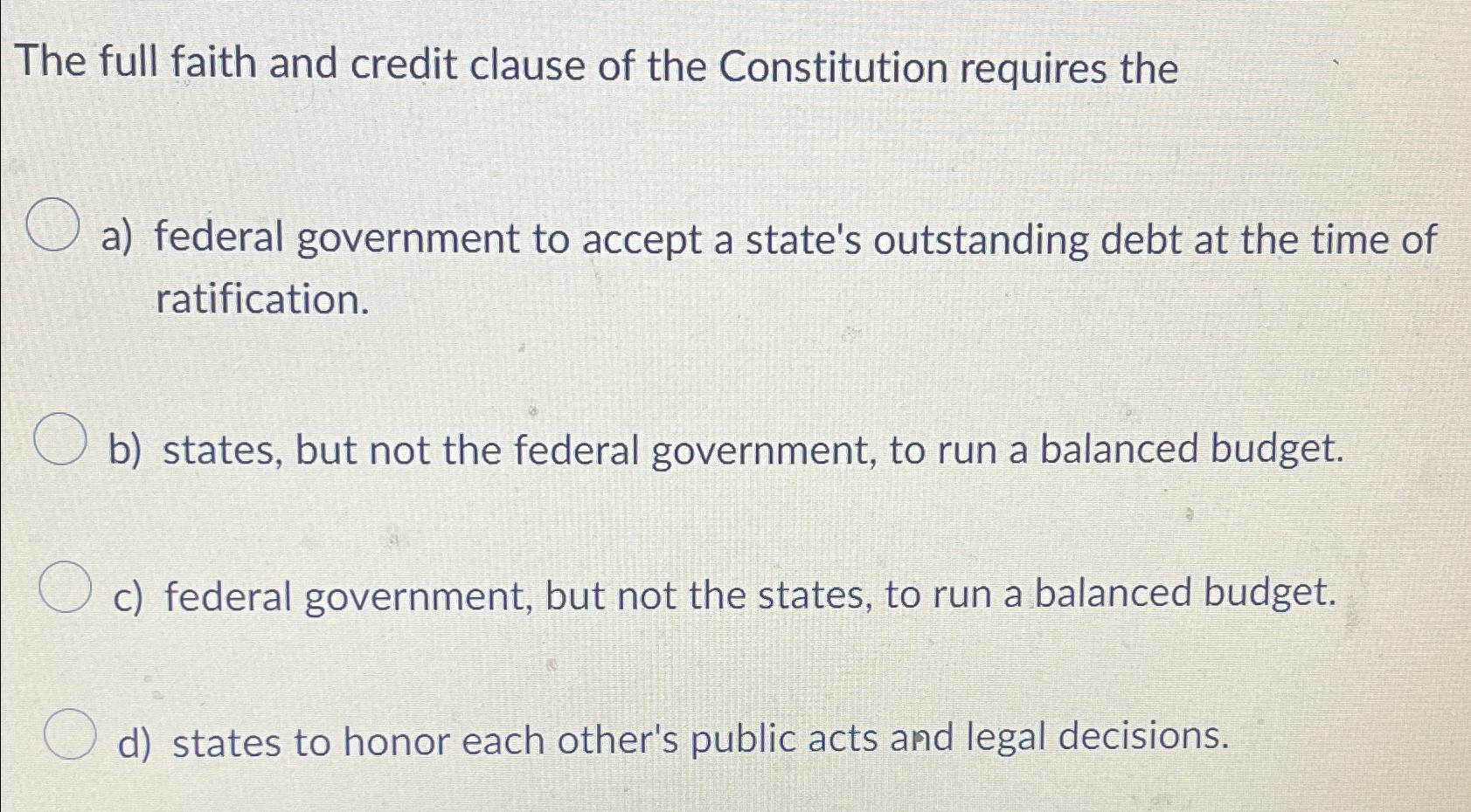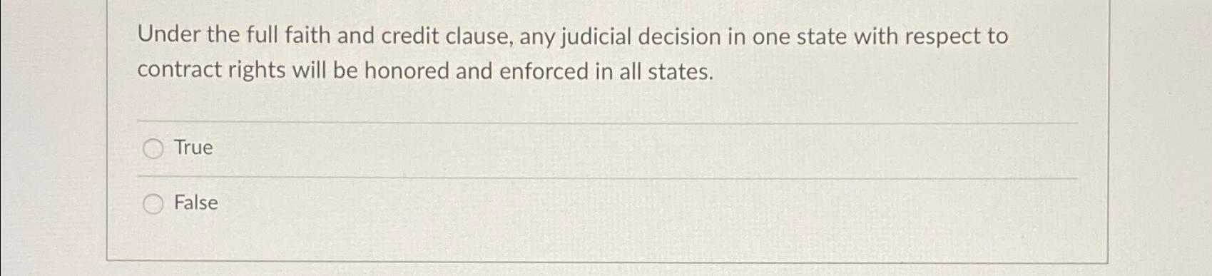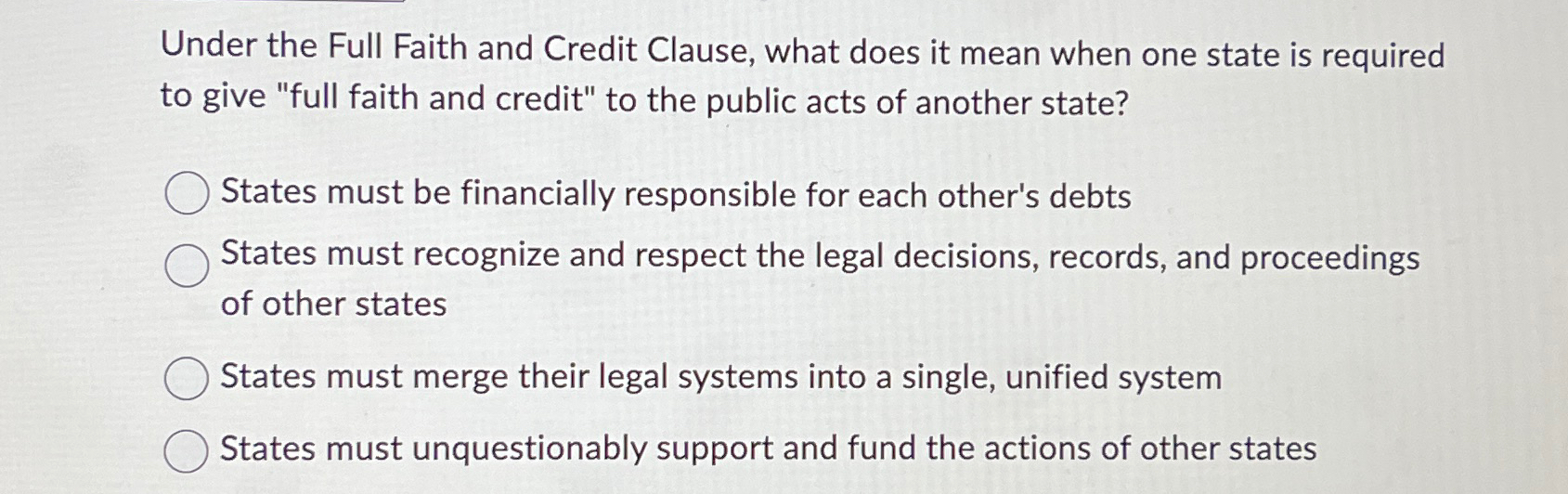 Solved Under the Full Faith and Credit Clause what does it Chegg com