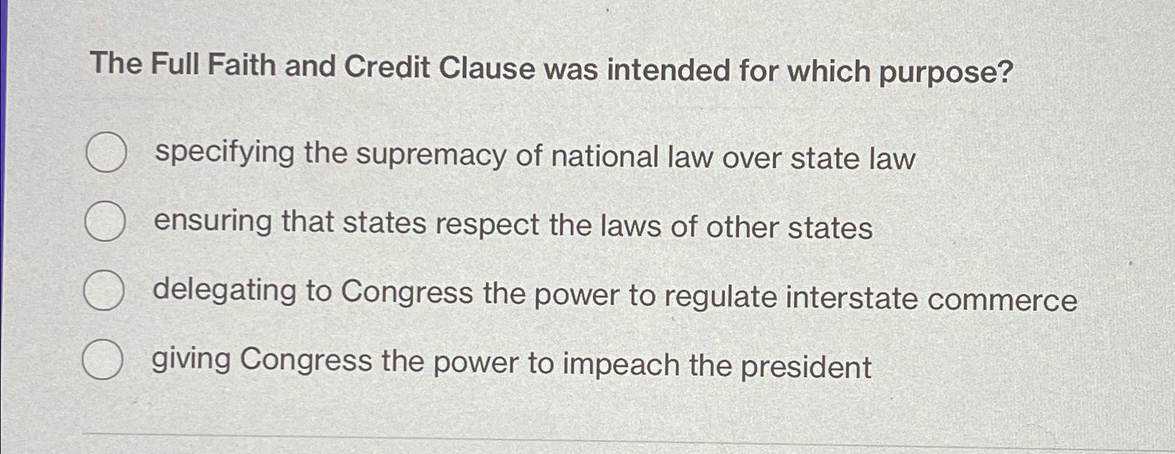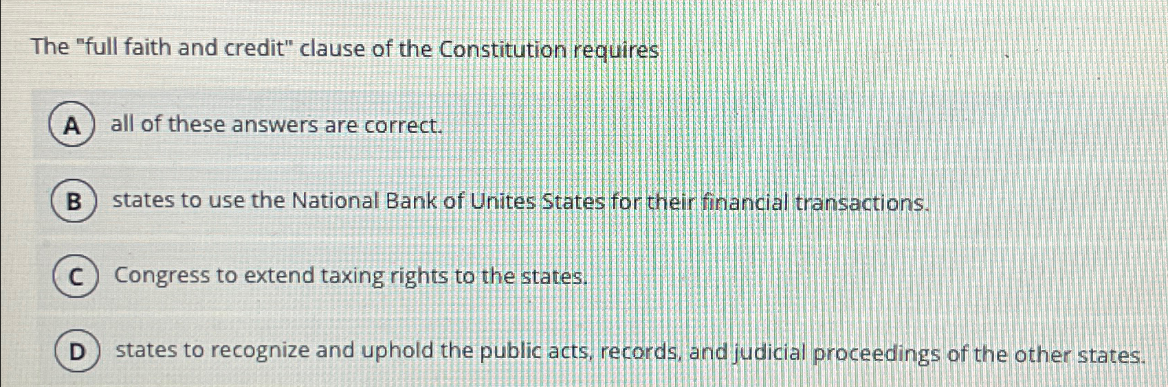 Solved The Full Faith and Credit Clause was intended for Chegg com
