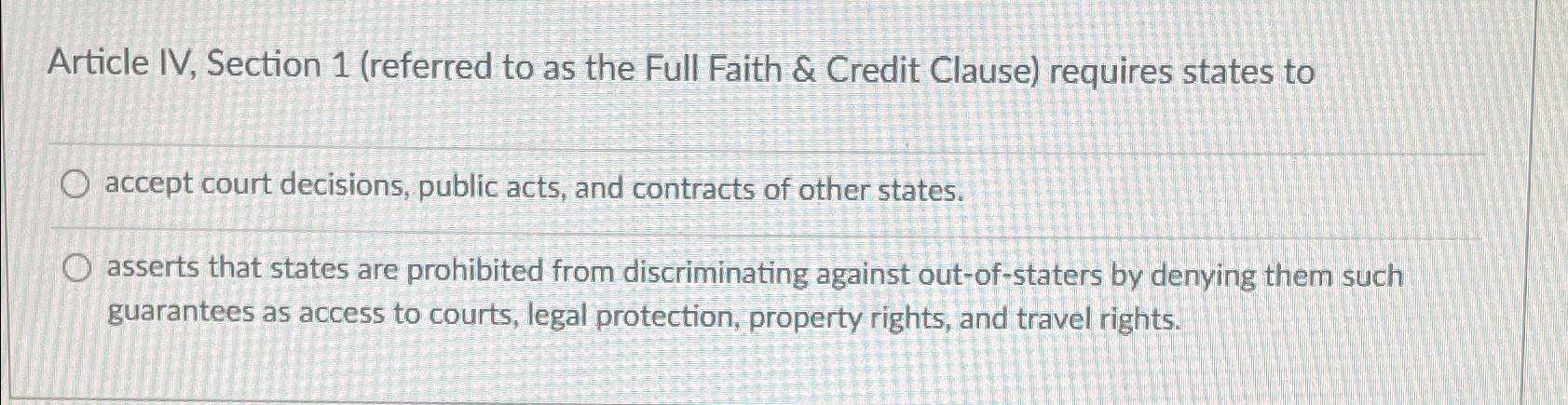 Solved Article IV Section 1 (referred to as the Full Faith Chegg com