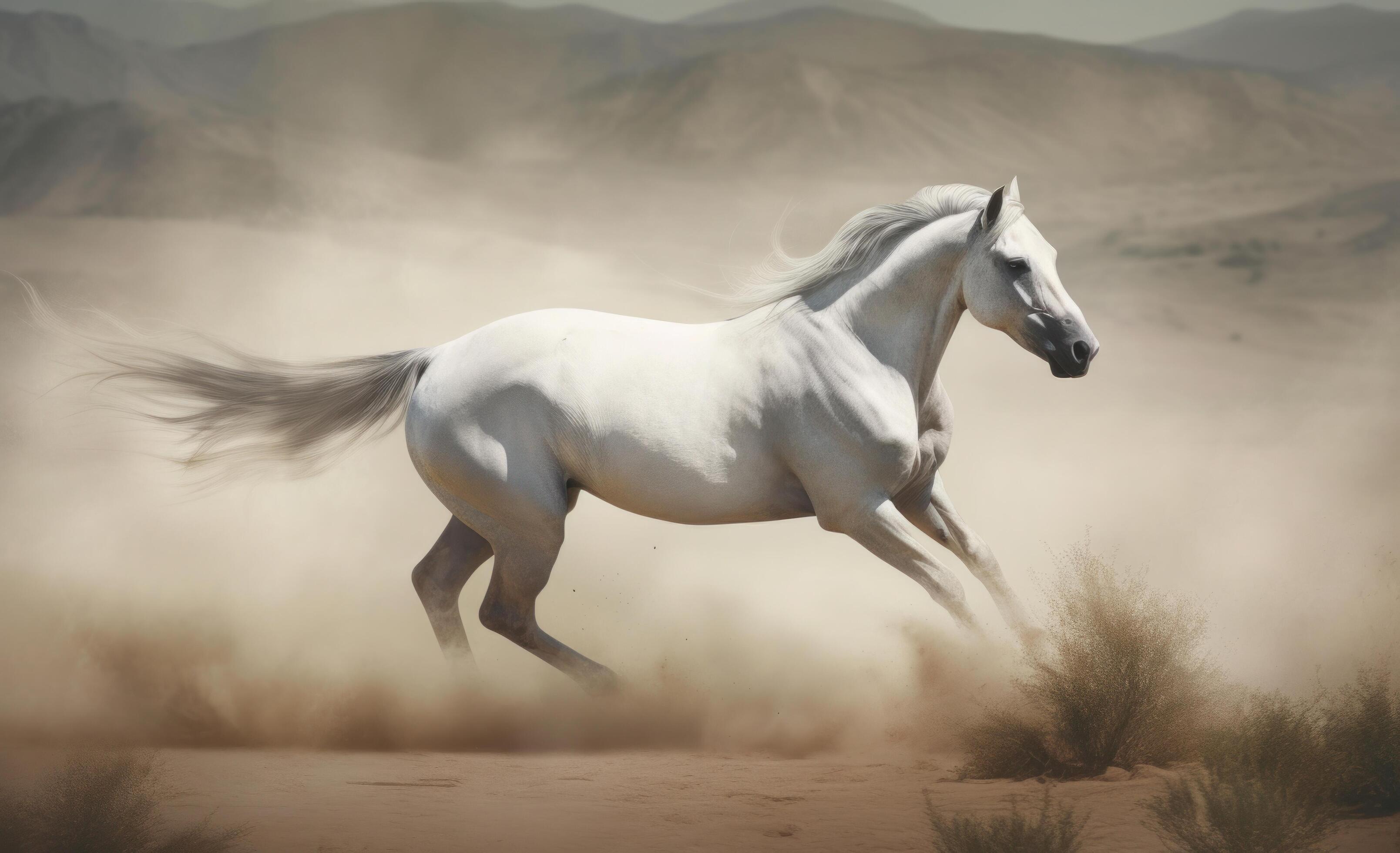 White horse galloping in the desert Illustration 22778206 Stock Photo