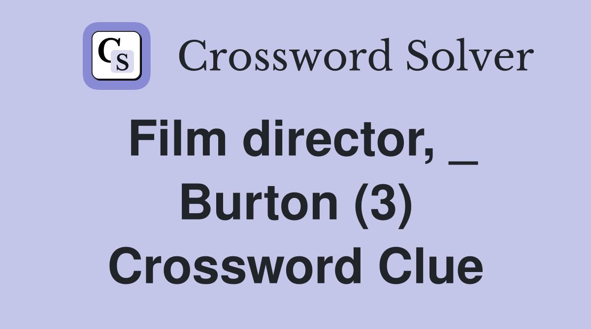 Film director Burton (3) Crossword Clue Answers Crossword Solver