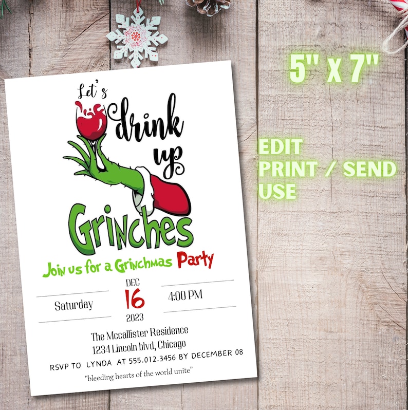 Editable Grinchmas Invitation Grinchmas Christmas Party Invitation