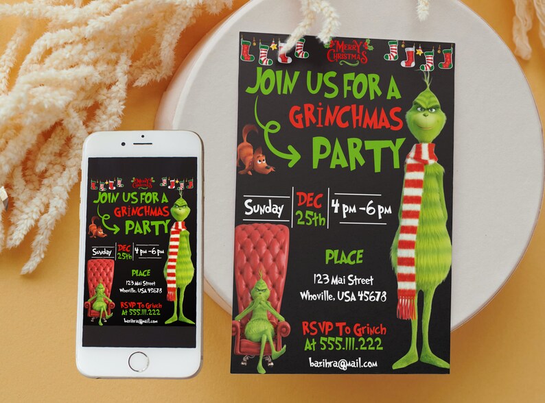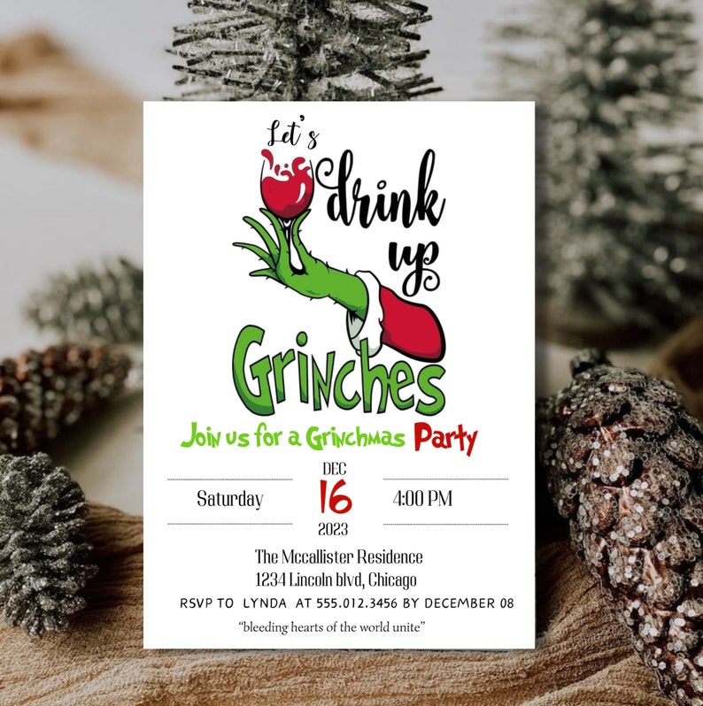 Grinch Christmas Invitation Christmas Party Invitation Etsy UK