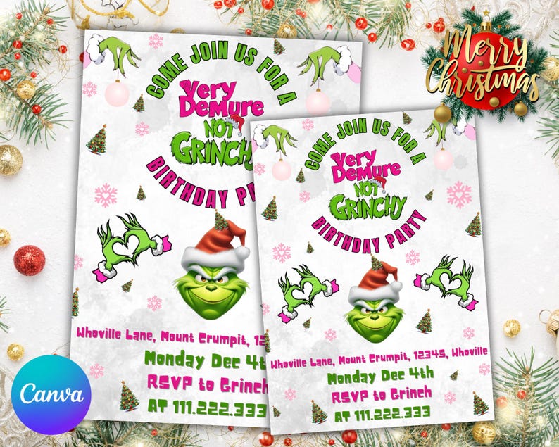 Editable Grinch Birthday Invitation Merry Grinchmas Invitation Grinch