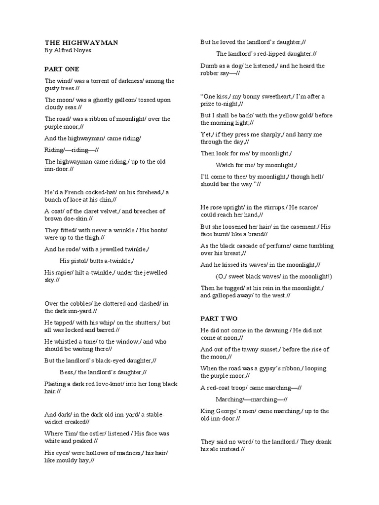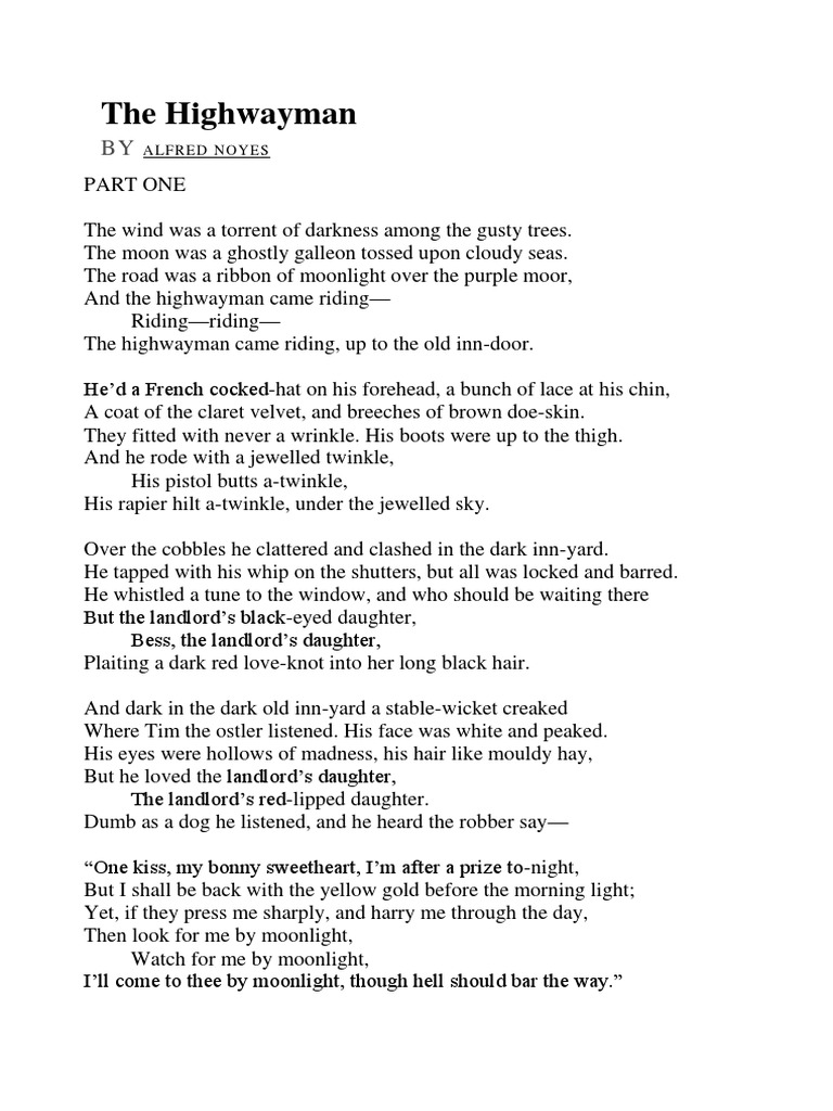 The Highwayman Text PDF
