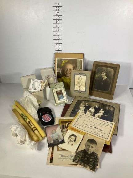 Collection of Photographs Marriage Certificate Religious Candles and