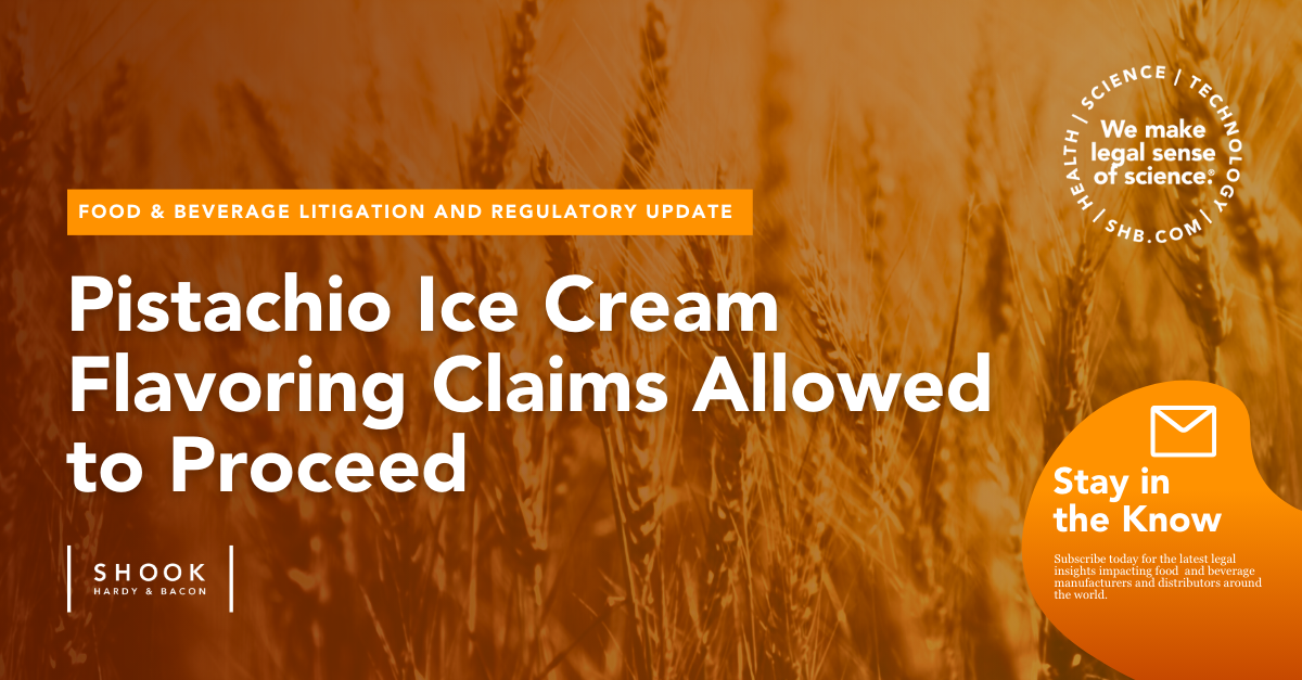 Pistachio Ice Cream Flavoring Claims Allowed to Proceed Food and