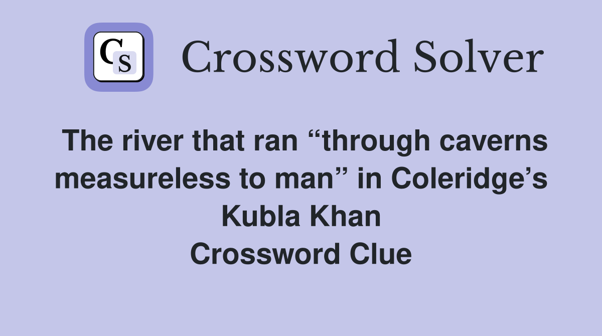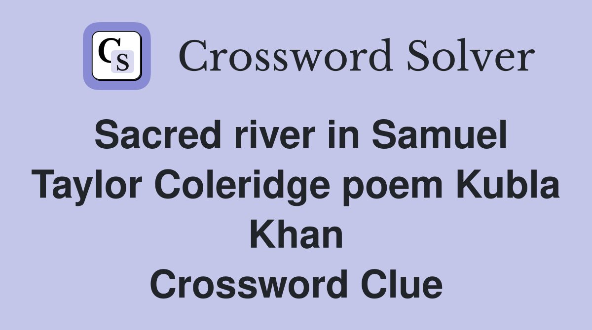 Sacred river in Samuel Taylor Coleridge poem Kubla Khan Crossword