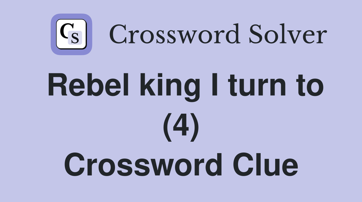Rebel king I turn to (4) Crossword Clue Answers Crossword Solver