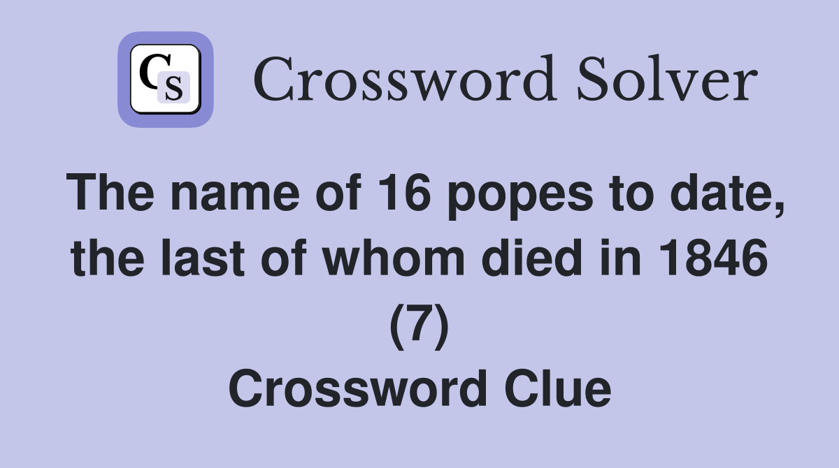 Here are some of the images for The Last Pope Julius Crossword that we found in our website database.