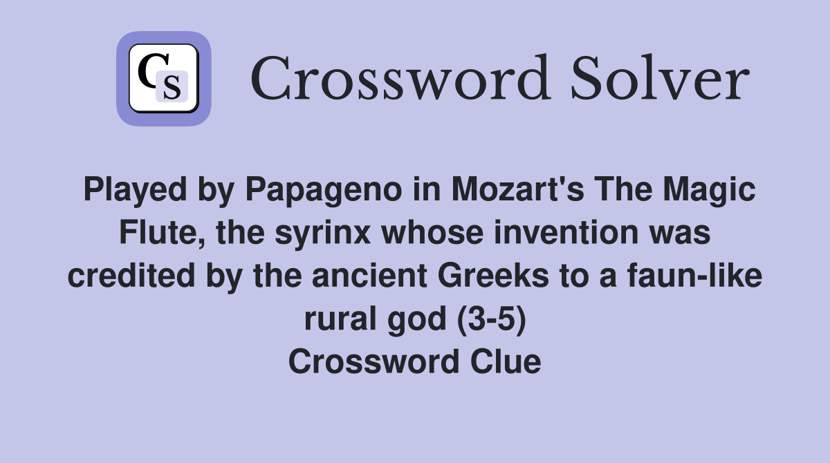 Here are some of the images for The Magic Flute Composer Crossword Clue that we found in our website database.
