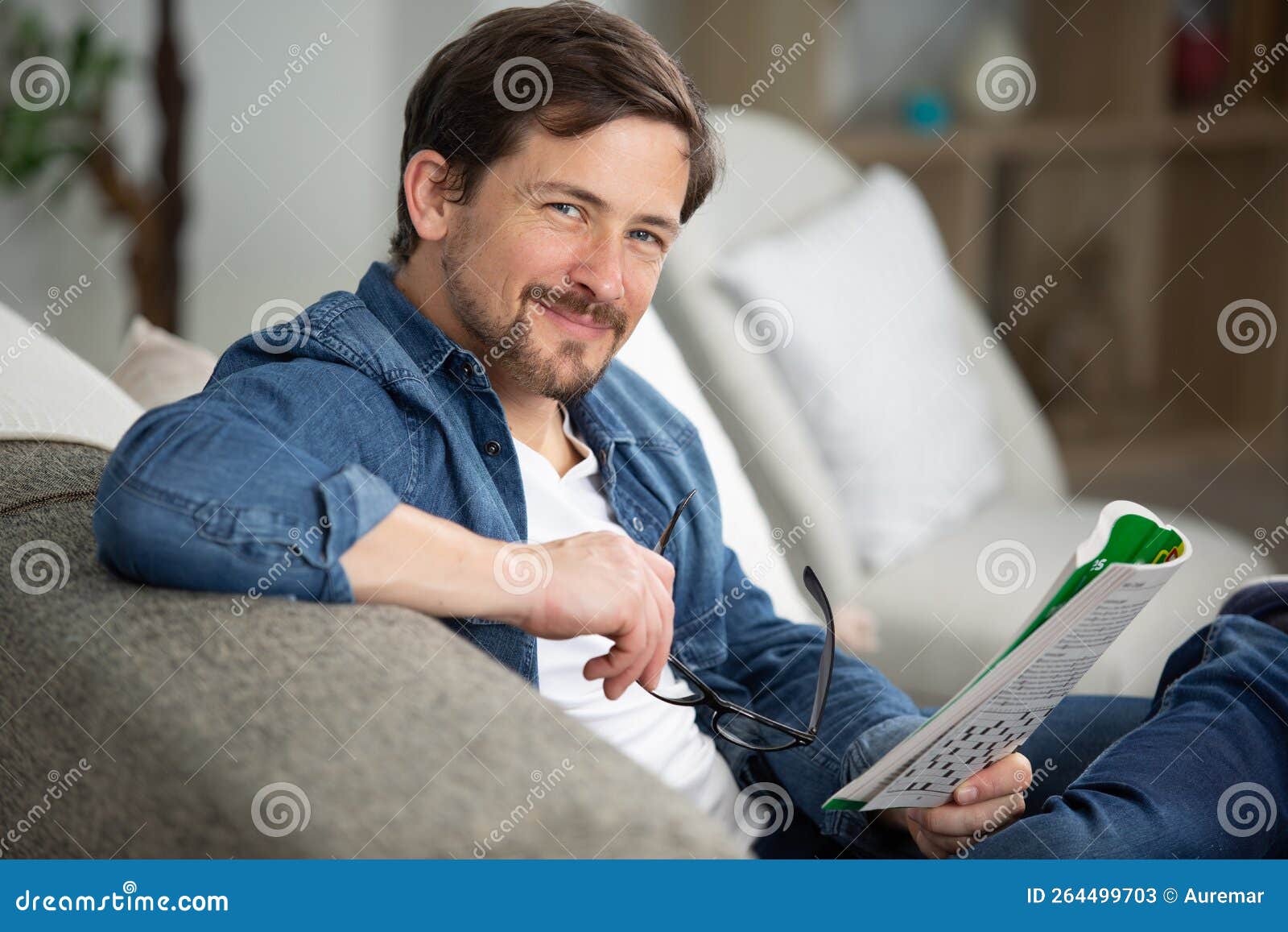 Young Man Sitting Doing Crossword Puzzle Stock Image Image of seated