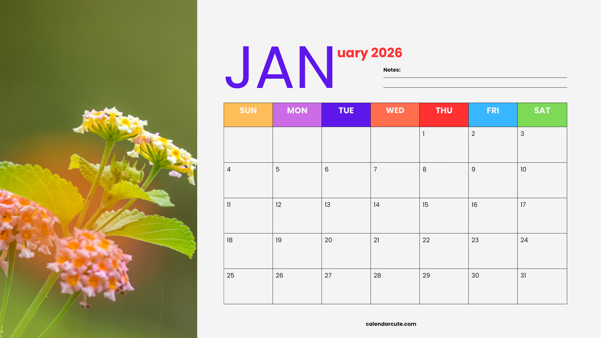 January 2026 Calendar Desktop Wallpaper Windows 10 Modern Present