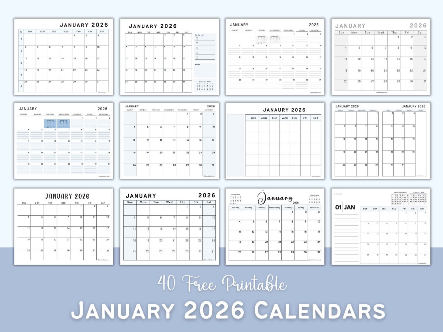 Free Printable January 2026 Calendars Print a Calendar 2026 Grab
