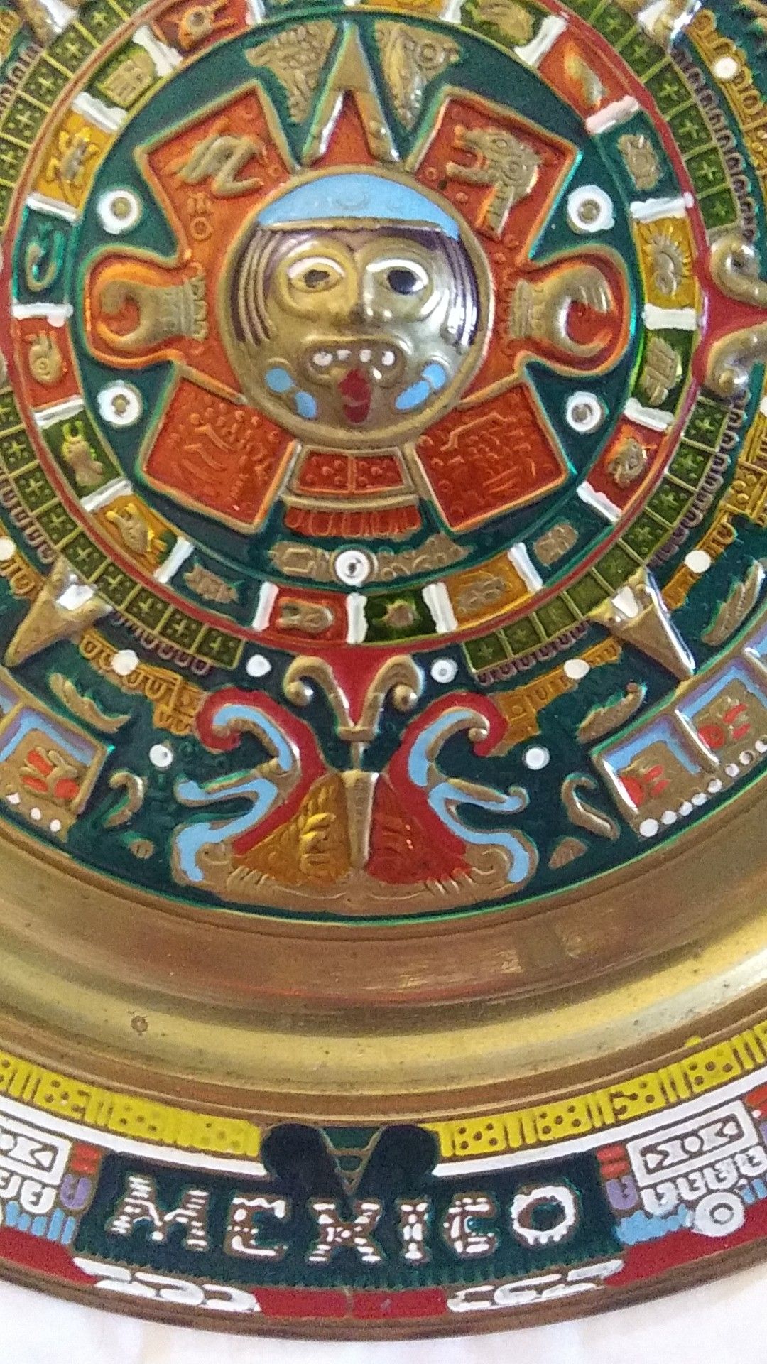 Vintage ART tribel warrior with Myan Calendar made and bought in mexico