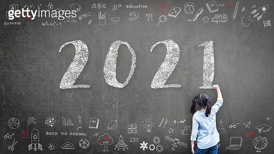 2021 Happy new year school class academic calendar with student kid s