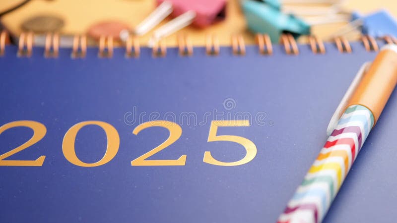 2025 Year Calendar on Office Desk Stock Video Video of blue yellow