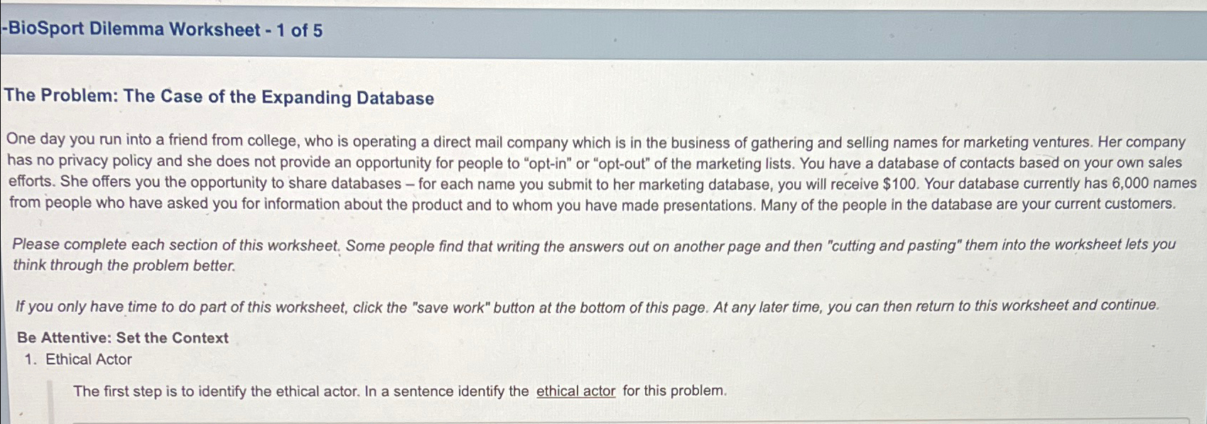 Solved BioSport Dilemma Worksheet 1 of 5The Problem: The Chegg com