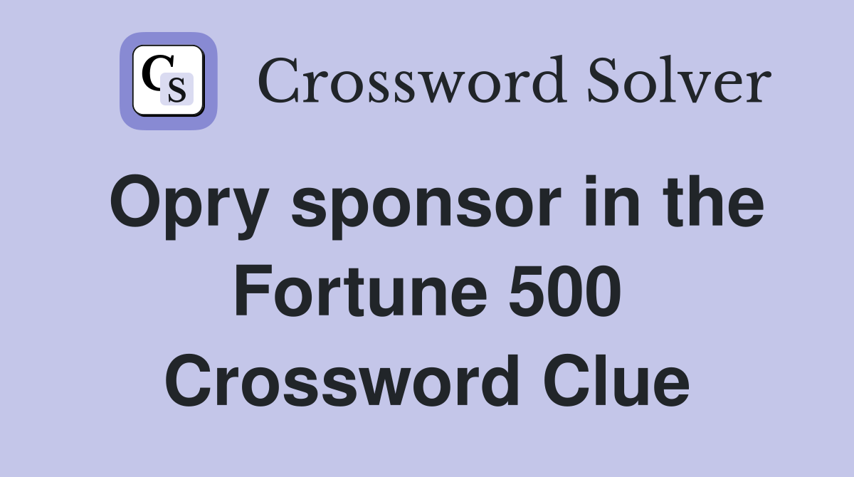 Opry sponsor in the Fortune 500 Crossword Clue Answers Crossword Solver