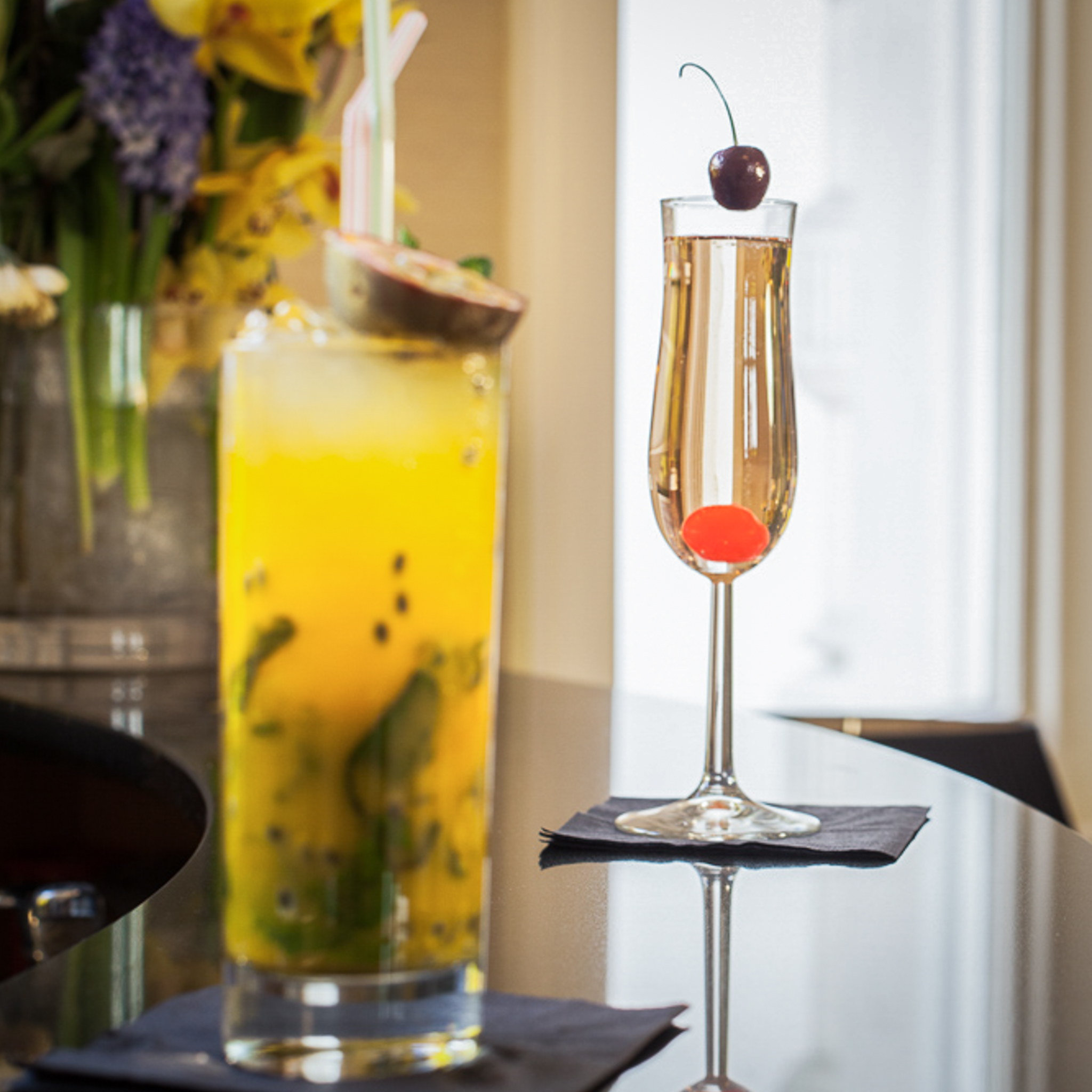 Relax at the Grand Bar with a selection of drinks and light bites in a