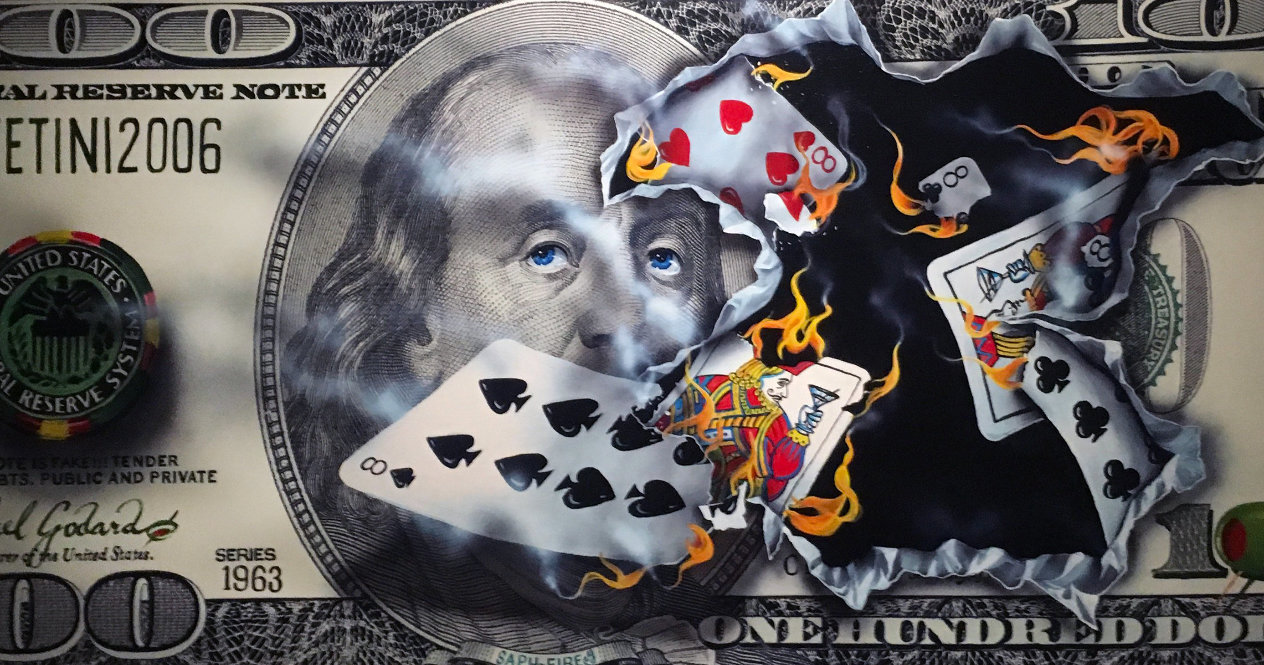 $100 Bill Full House 2010 Huge 36x85 by Michael Godard For Sale