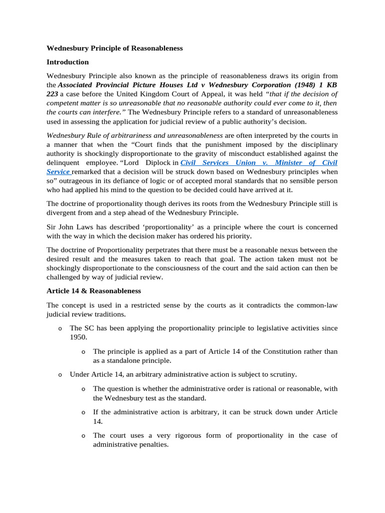 Wednesbury Principle of Reasonableness PDF Supreme Court Of The