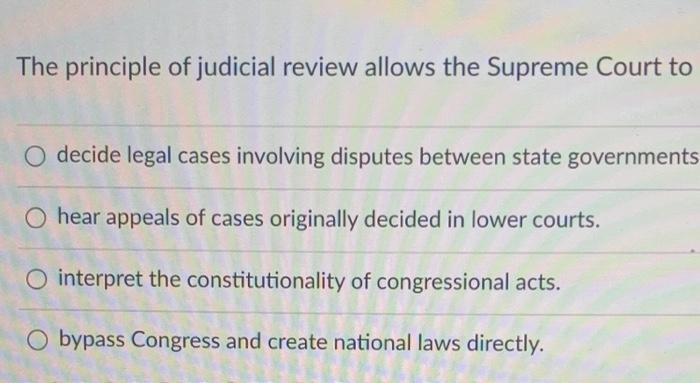 Solved The principle of judicial review allows the Supreme Chegg com