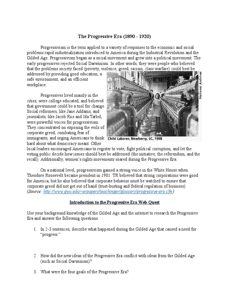 The Progressive Era Worksheet Download Free PDF Progressivism