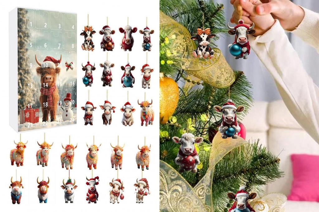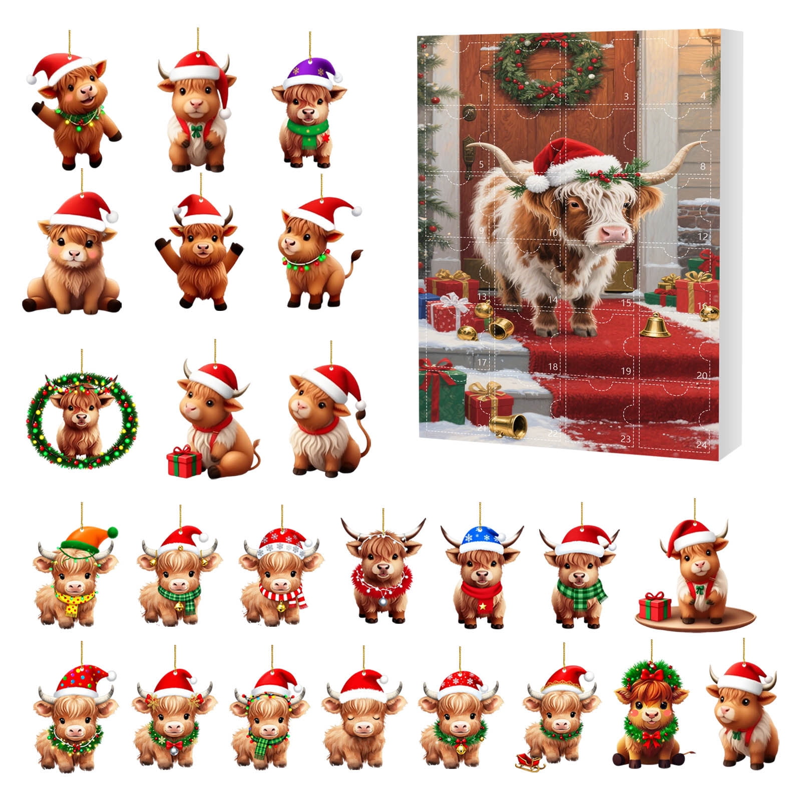 GaiBoSi2024 Highland Cow Christmas Advent Calendar Christmas Ornaments