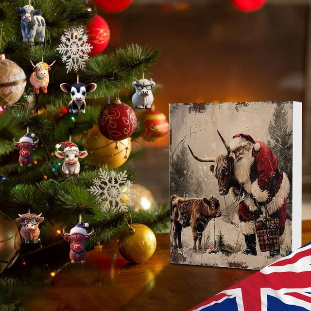 {Warm} 2024 Christmas Highland Cow Advent Calendar Box for Christmas