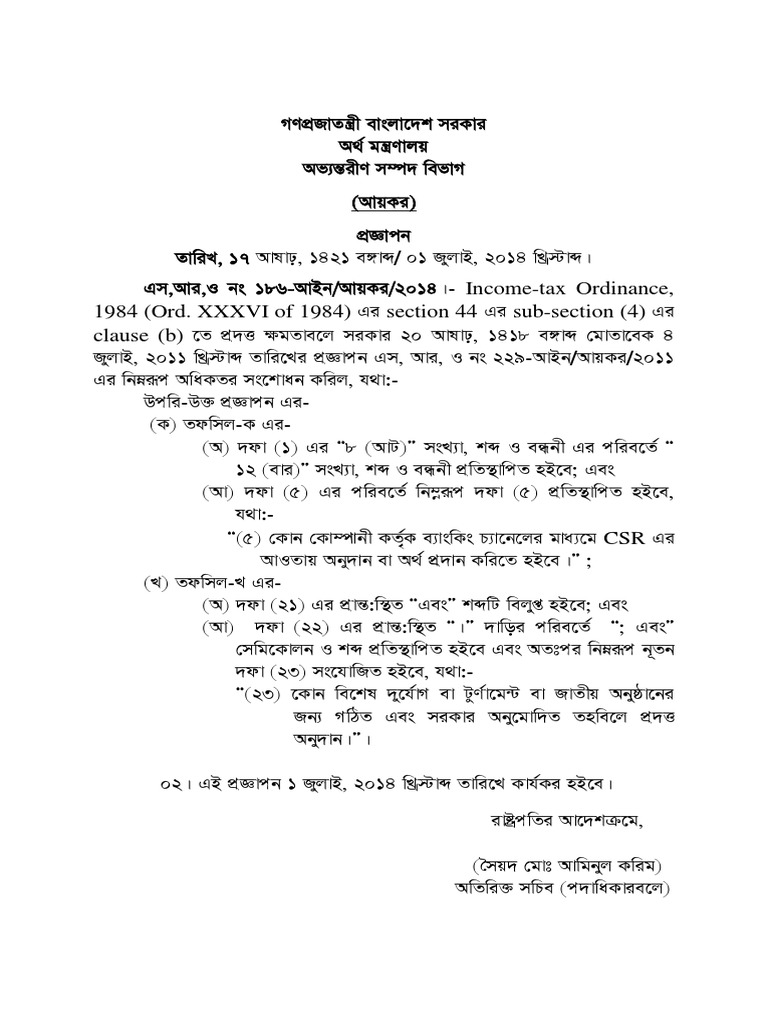 অব্যাহতিপ্রাপ্ত সকল এসআরও (SRO of all exemption vat Bangladesh)