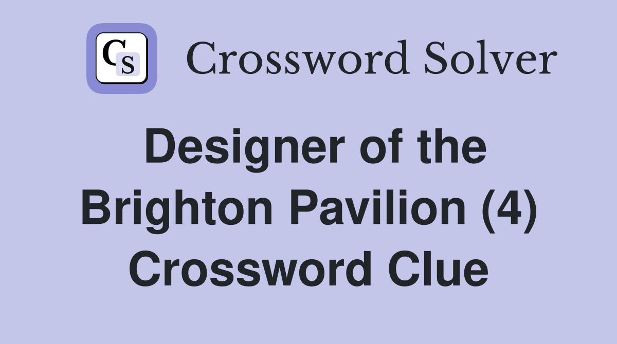 Designer of the Brighton Pavilion (4) Crossword Clue Answers
