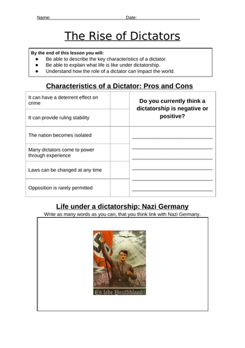 The Rise Of Dictators Worksheet Printable Calendars AT A GLANCE