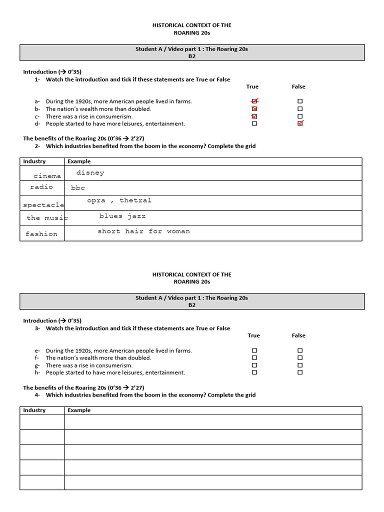 The Roaring Twenties Worksheet Des 3 Parties PDF Roaring Twenties