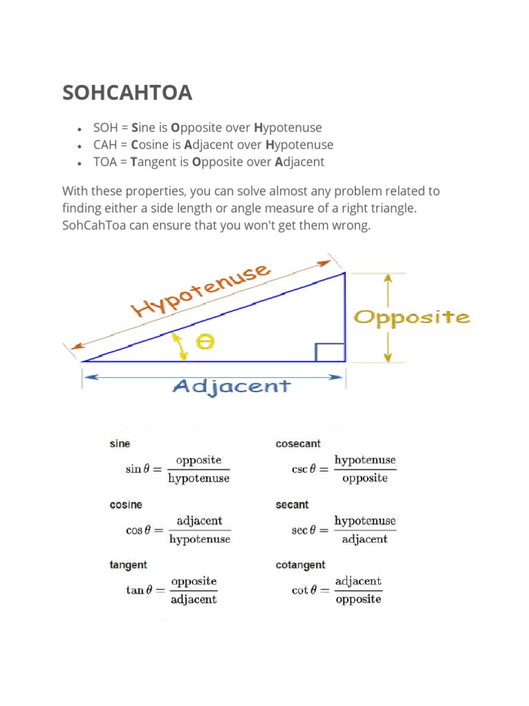 Sohcahtoa PDF Trigonometric Functions Geometry