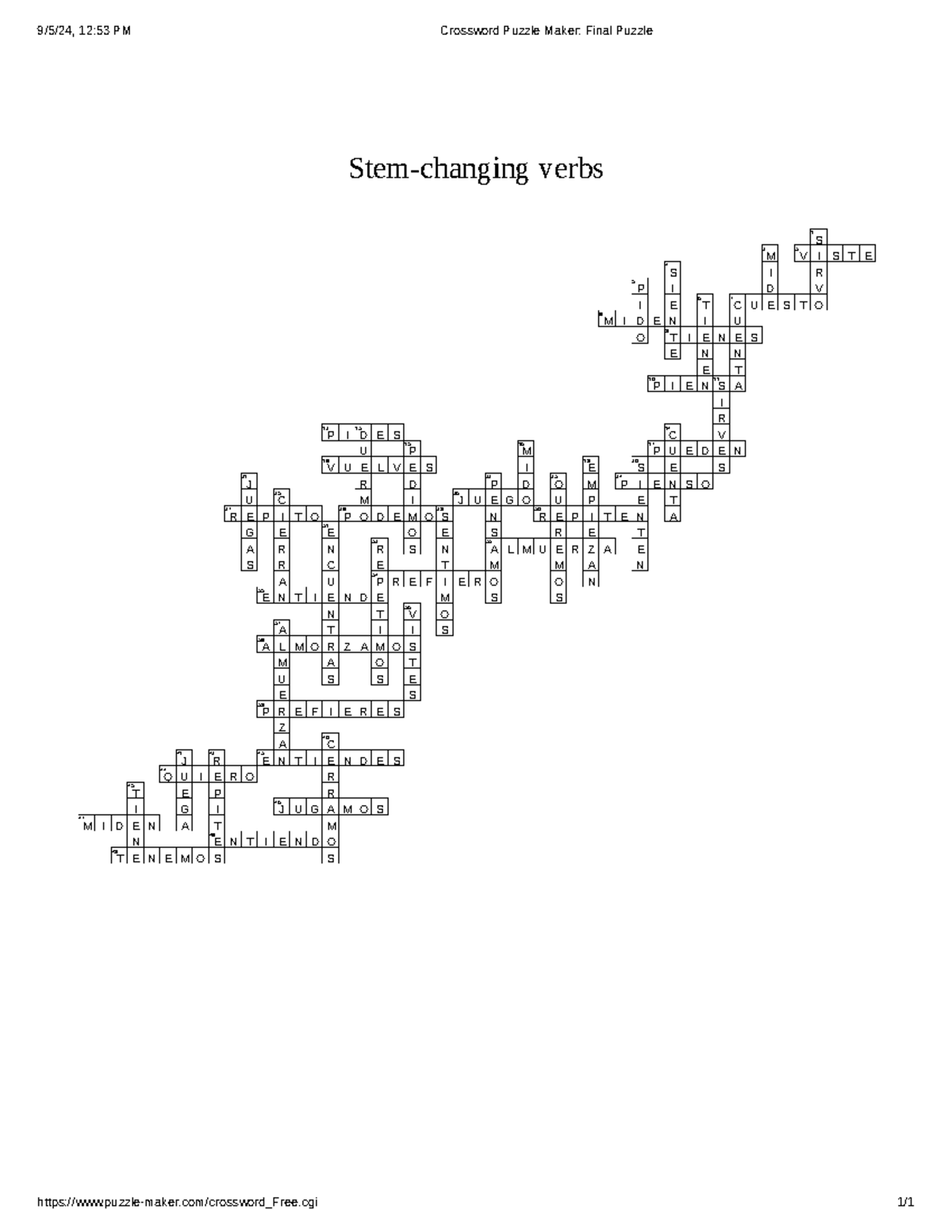 Crossword puzzle key y kow same thing Stem changing verbs 1 2 S M