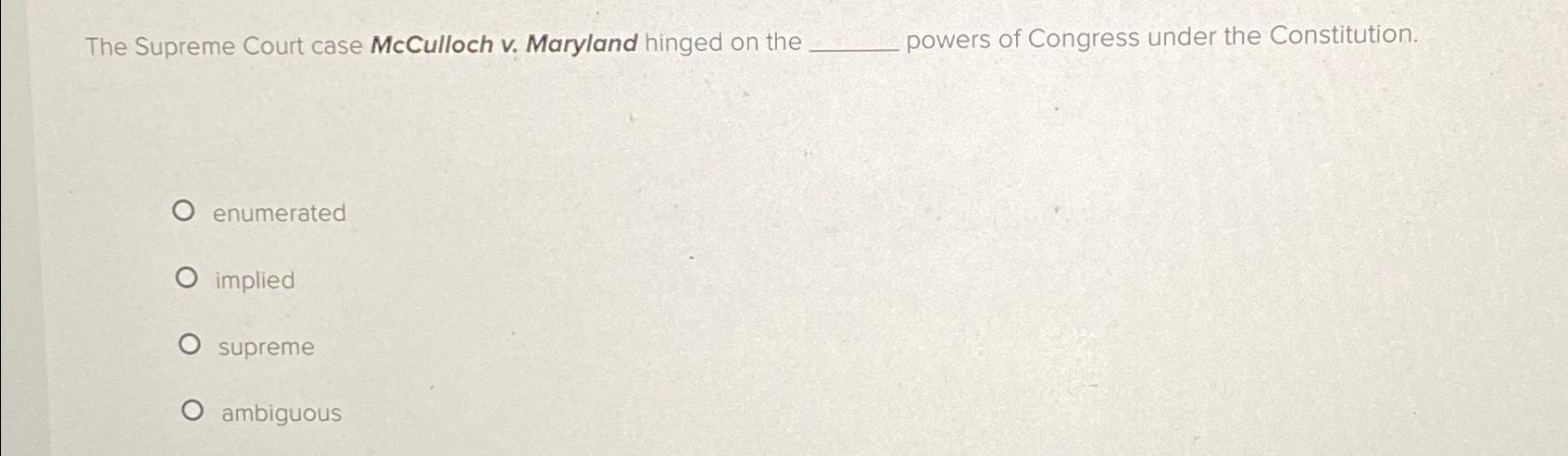 Solved The Supreme Court case McCulloch v Maryland hinged Chegg com
