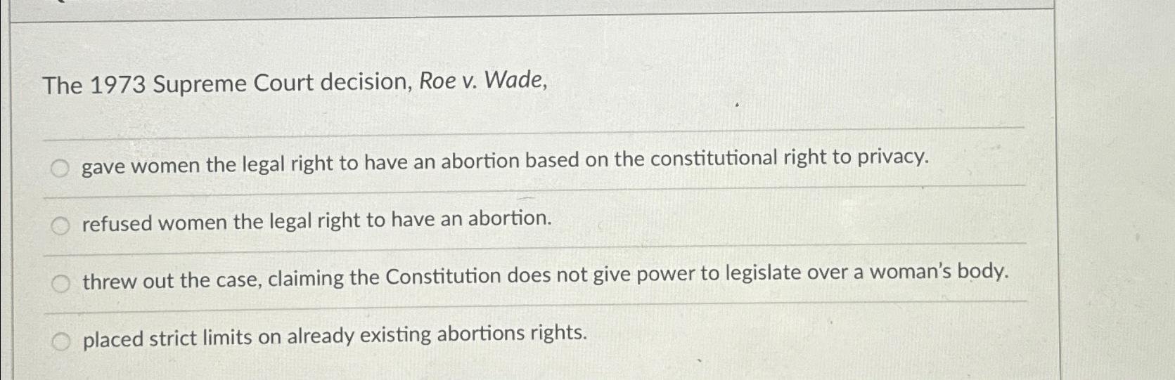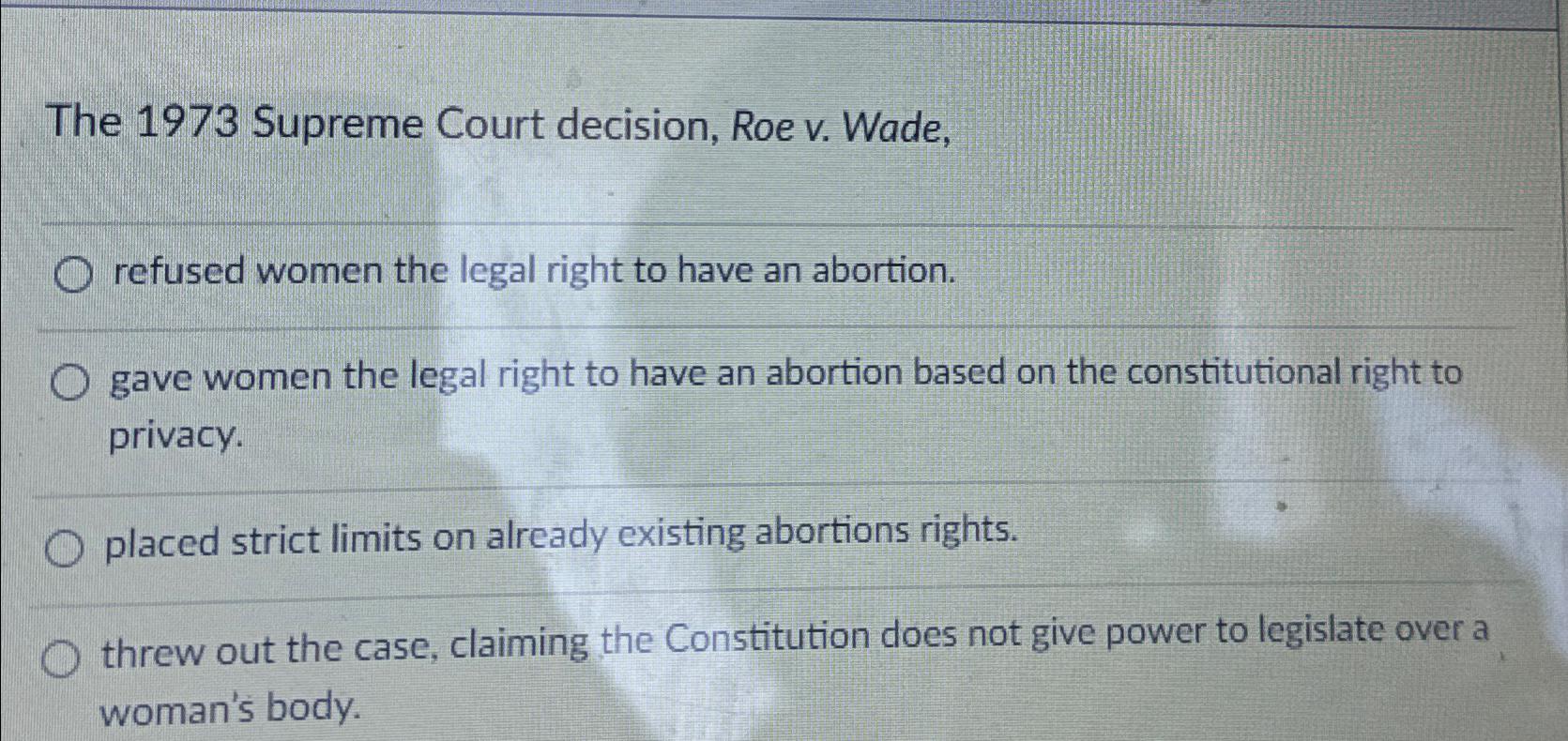Solved The 1973 Supreme Court decision Roe v Wade gave Chegg com