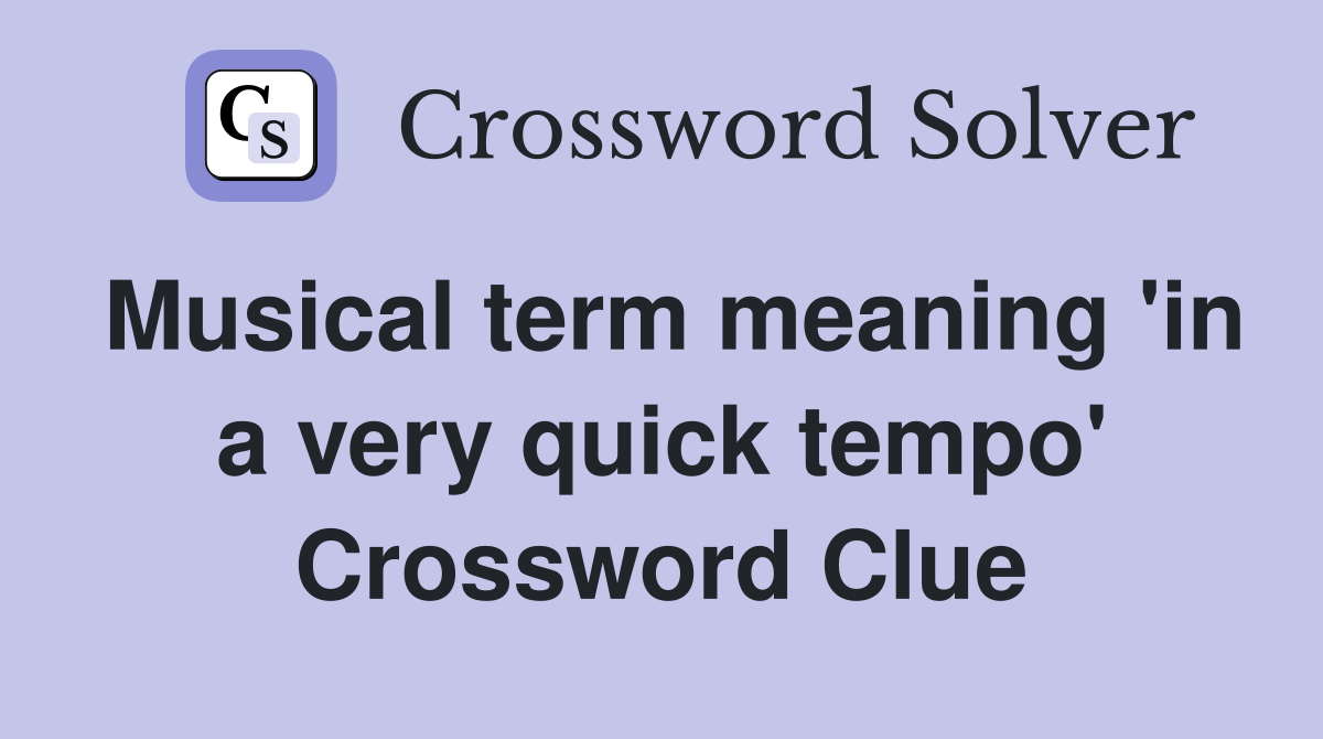 Musical term meaning #39 in a very quick tempo #39 Crossword Clue Answers