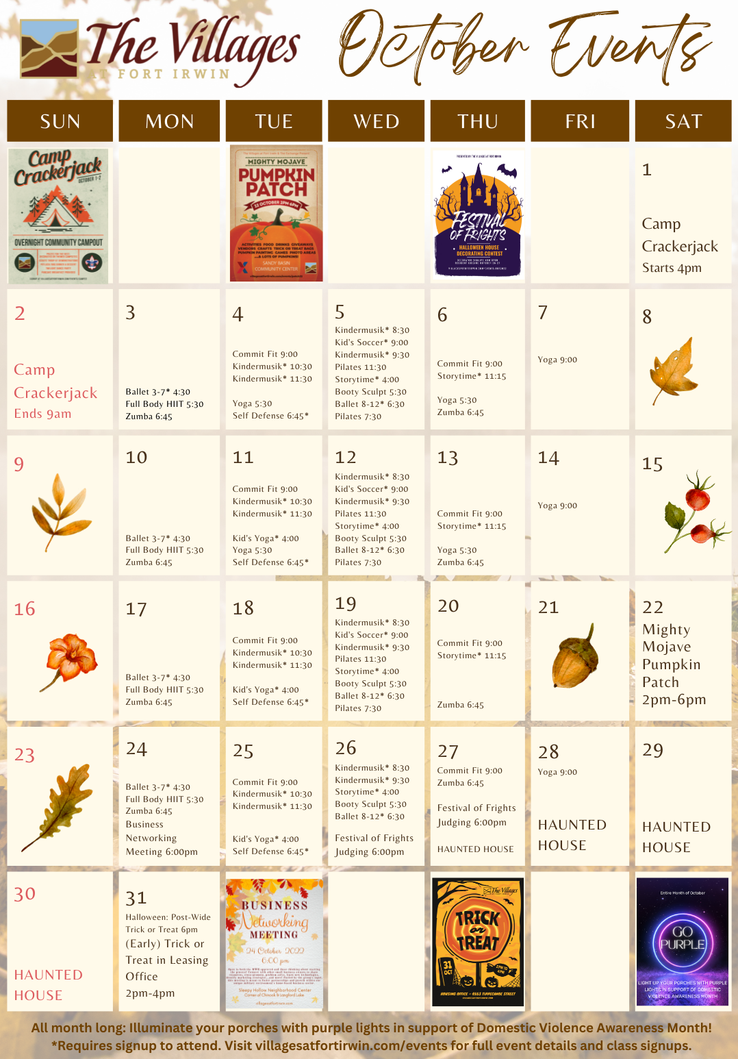 October Events Classes Calendar The Villages at Fort Irwin