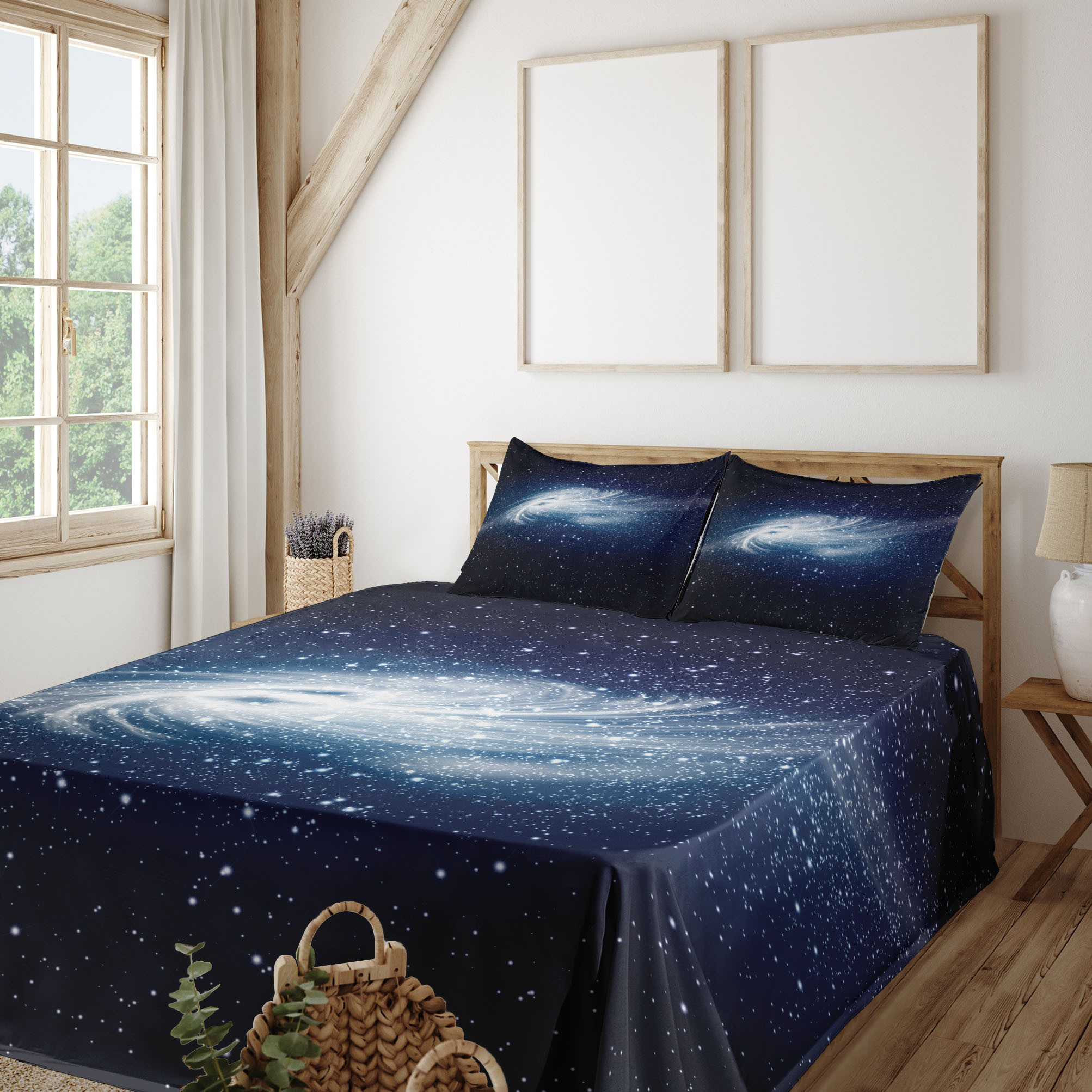 Ambesonne Space Flat Bedding Sheet Soft Top Sheet Galaxy Milky Way