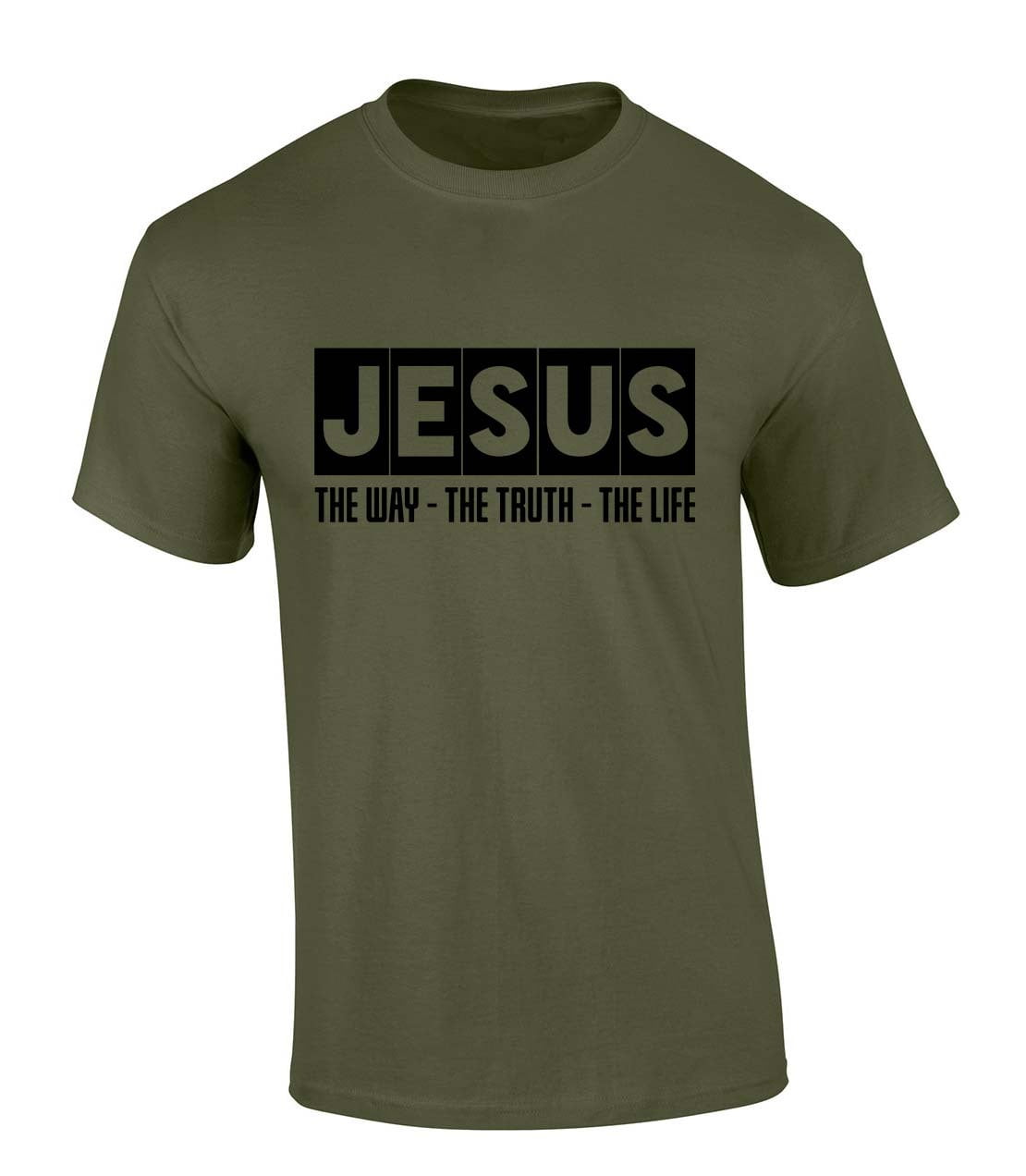 Mens Christian Tshirt Jesus the Way the Truth the Life Short Sleeve T