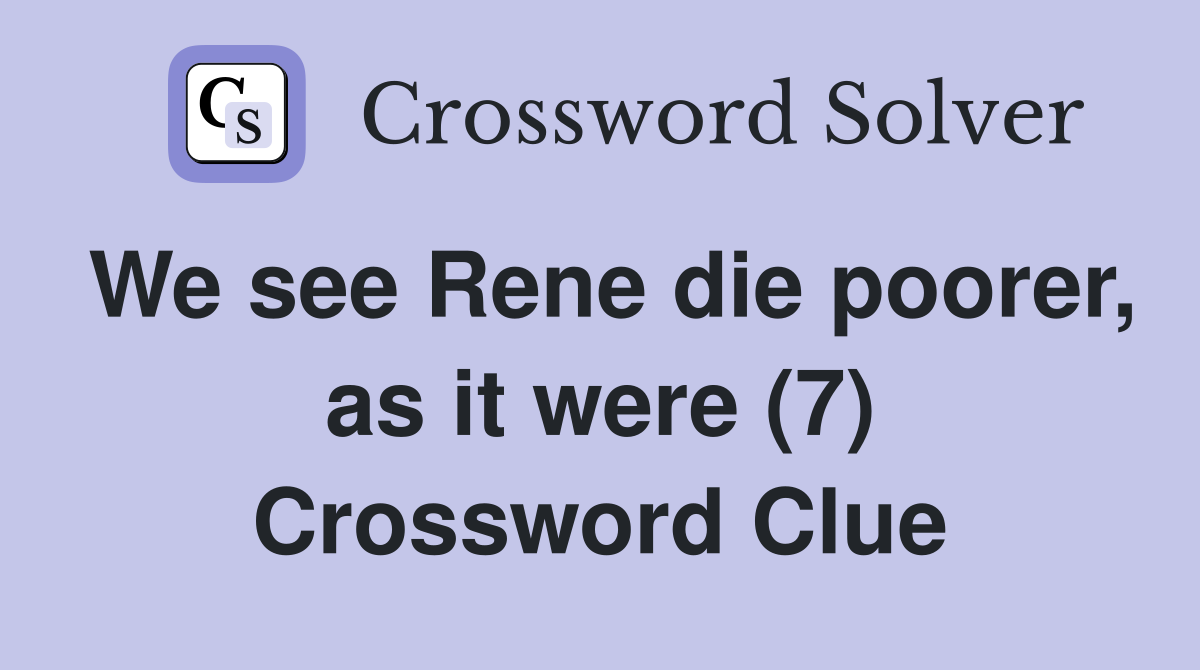 We see Rene die poorer as it were (7) Crossword Clue Answers